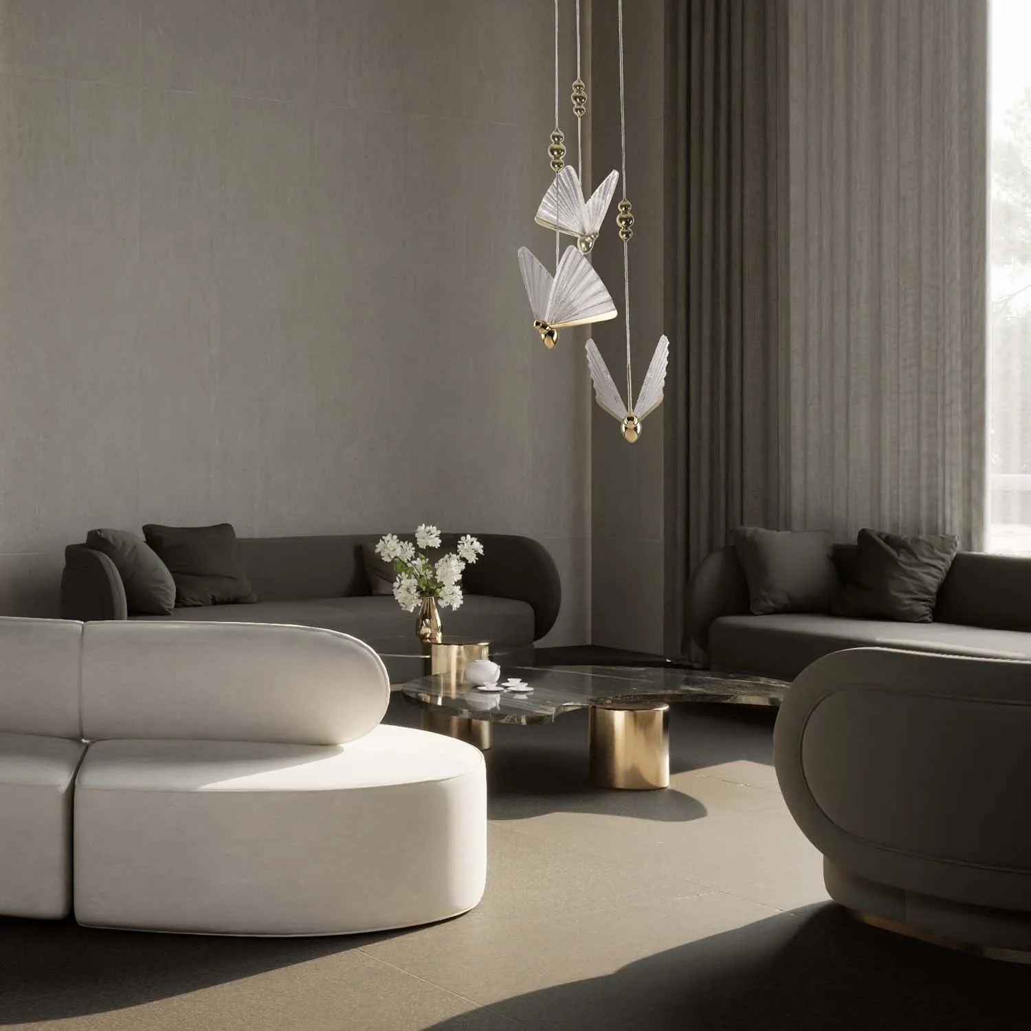 Efektowny złoty kolor podsufitki, zawiesia oraz motyli wnosi do wnętrza poczucie elegancji i luksusu. Połyskujące wykończenie nada pomieszczeniu nowej, wyjątkowej energii i ożywi dodatki w stonowanych lub ciemnych kolorach. Całości dopełniają przezroczyste skrzydła, które nawet przy wyłączonym świetle dają kompozycji wyjątkową lekkość. Staranne wykończenie detali podkreśla wysoką jakość wykonania, co sprawia, że lampa Mariposa spełni oczekiwania nawet najbardziej wymagających użytkowników