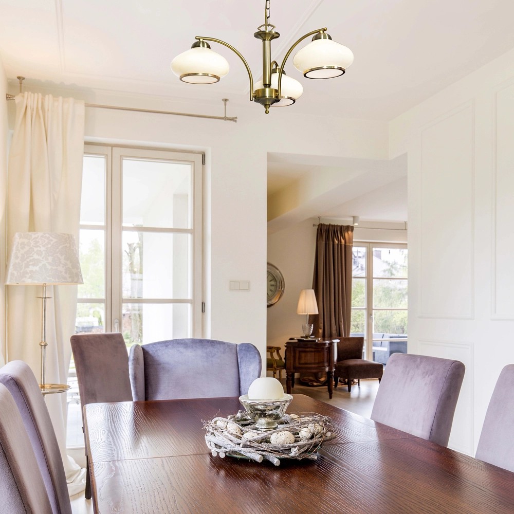 Montaż oprawy jest bardzo prosty (montuje się ją nawierzchniowo, bez potrzeby wiercenia dziur) i daje możliwość wysoce energooszczędnego oświetlenia mieszkania, hotelu, restauracji czy innej powierzchni użyteczności publicznej. Klosz przeznaczony jest na trzy żarówki o gwintach E27 i mocy maksymalnej 40W (brak w zestawie), dzięki czemu można samemu dobrać moc i rodzaj żarówek, jakie będą odpowiednie w danym pomieszczeniu. Nieoceniona jest możliwość wymiany źródła światła, która sprawia, że oprawa kloszowa zawsze będzie nadawać się do użytku.