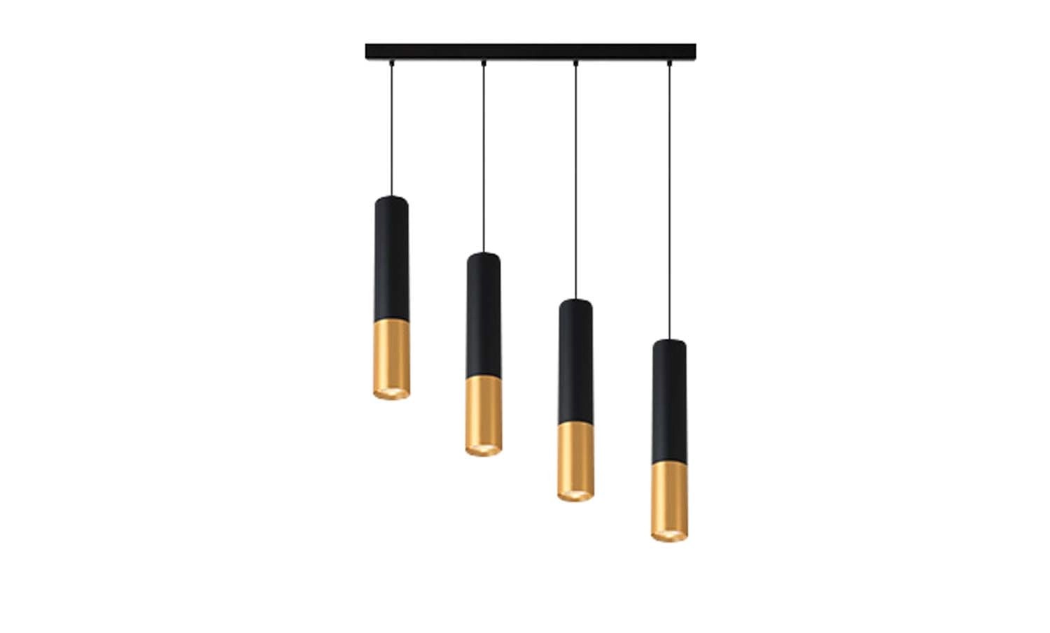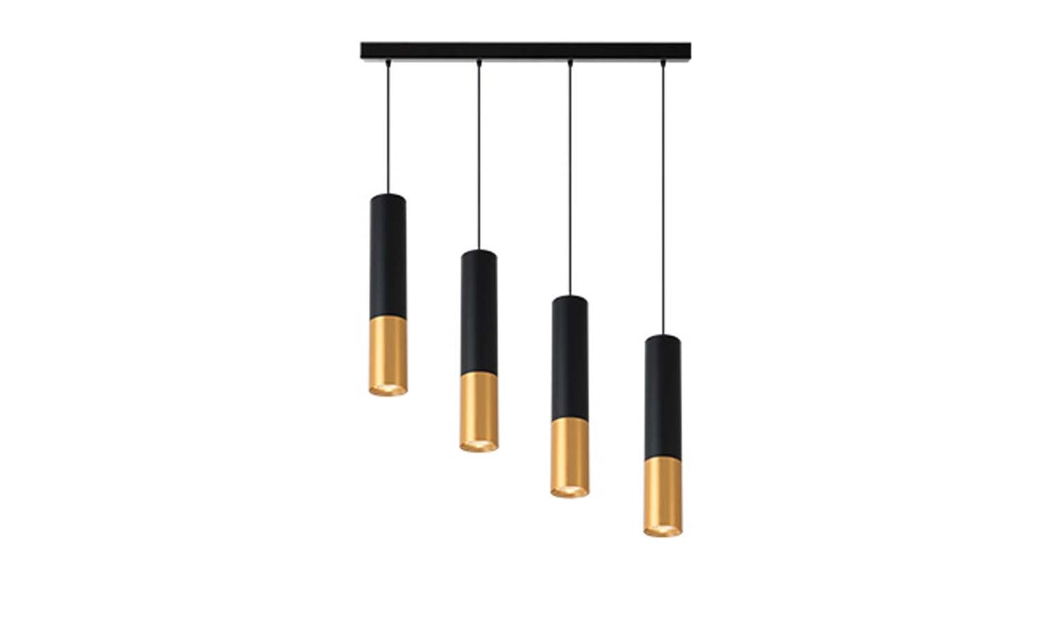 Lampa KEON to cztery smukłe tuby o średnicy 5,4 cm zawieszone na cienkich przewodach i zamocowane na podłużnej podsufitce. Całość konstrukcji wygląda lekko i dynamicznie, co dodatkowo urozmaica różna wysokość zawieszenia kloszy. Elegancka lampa ze stali i aluminium w modnej czerni sprawdzi się w przestrzeniach o różnej stylistyce, zarówno minimalistycznych, nowoczesnych, jak i bardziej tradycyjnych oraz wypełnionych żywymi kolorami. Elementy w kolorze złotym nadają jej dodatkowo blasku i wprowadzają efekt glamour.