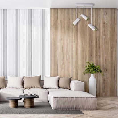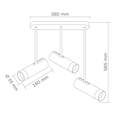 Lampa została przystosowana do trzech żarówek o trzonku GU10 i mocy max. 10W LED. Produkt sprzedawany jest bez źródeł światła w zestawie, należy je zakupić oddzielnie. Dzięki wymiennym żarówkom można swobodnie dopasować barwę światła odpowiednią do charakteru wnętrza.