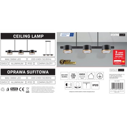 Goldlux Lampa wisząca MIRELLA 3xGX53 6W szer. 50 cm czarno-złota