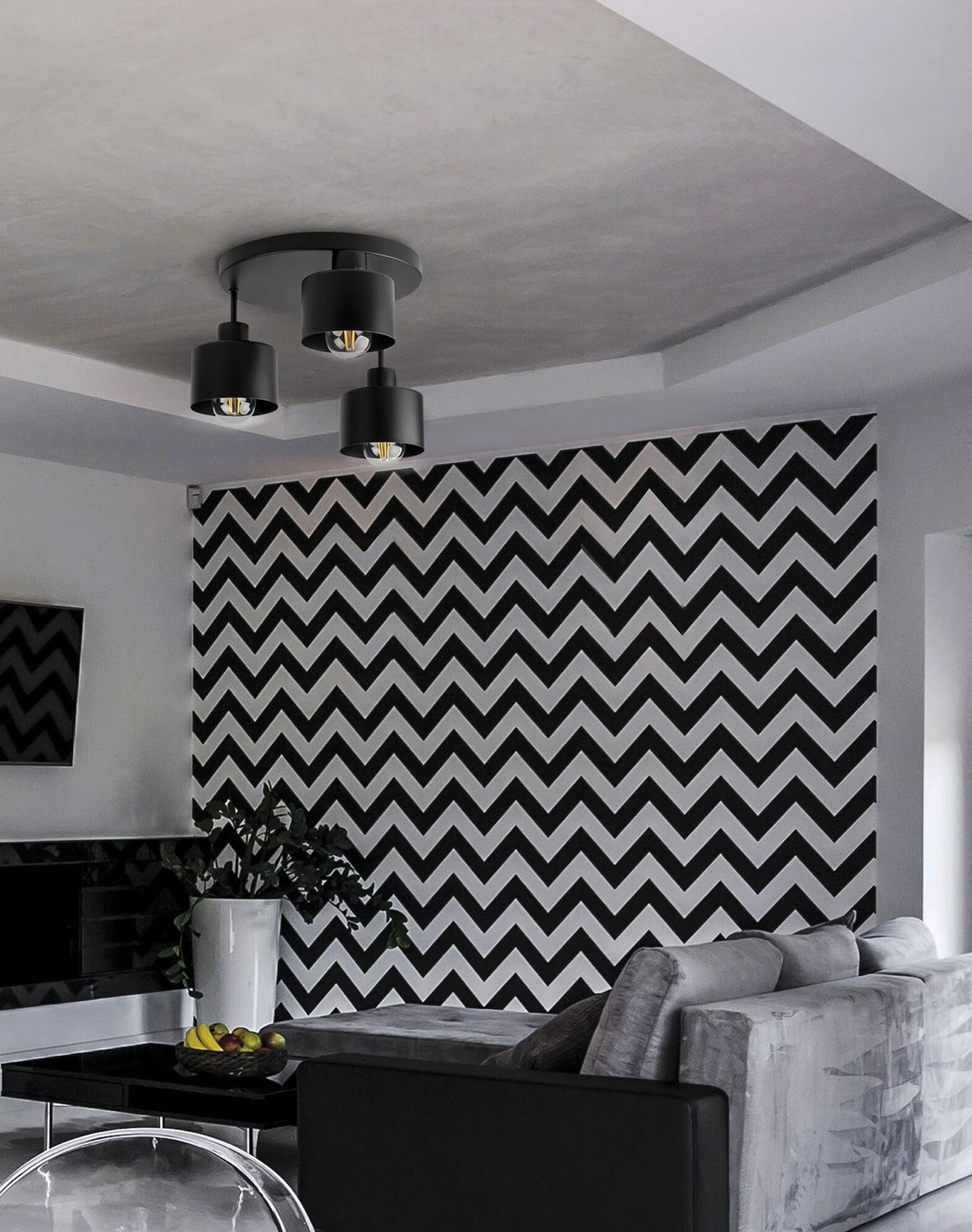 Nowoczesna czarna lampa sufitowa o metalowej obudowie z trzema kloszami o średnicy 12 cm będzie uniwersalnym dodatkiem do wnętrz zaprojektowanych w różnorodnej stylistyce. Doskonale sprawdzi się zarówno w przestrzeni domowej jak i w pomieszczeniach biurowych.