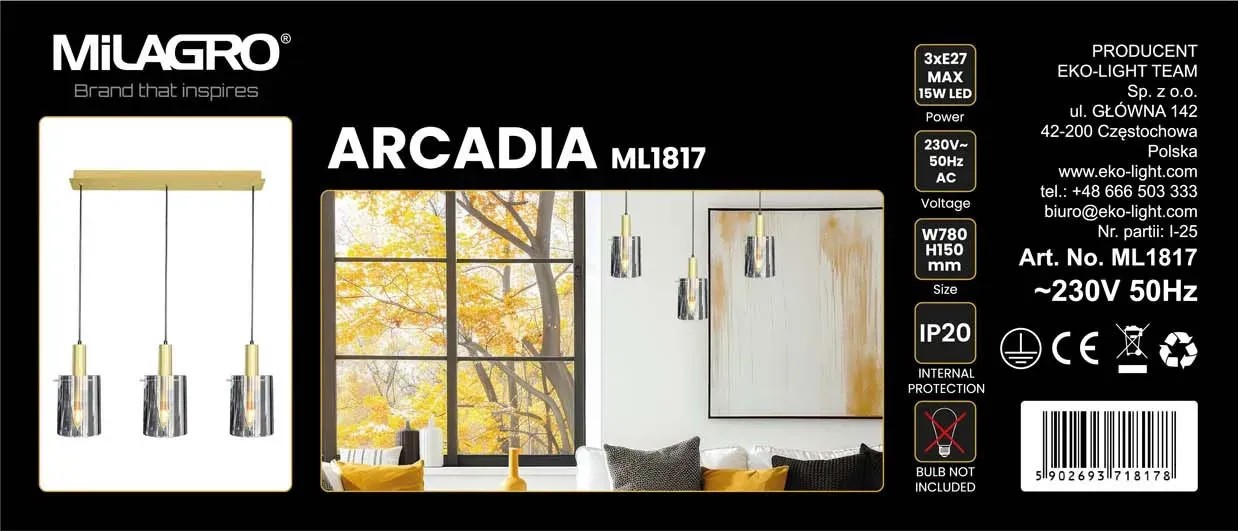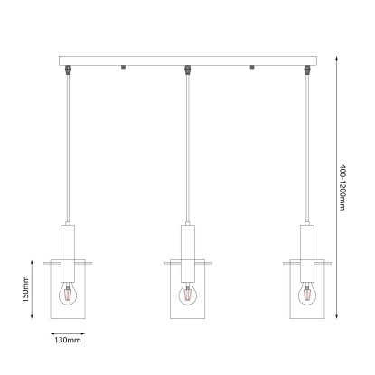 Źródło światła stanowią trzy żarówki z gwintem E27 o mocy max. 15W LED. Produkt sprzedawany jest bez źródeł światła w zestawie, należy je zakupić oddzielnie. Swoboda w wyborze żarówek pozwoli dopasować barwę i intensywność światła do indywidualnych preferencji i charakteru pomieszczenia. Dodatkowym atutem jest możliwość regulacji wysokości zawieszenia lampy w zakresie 40-120 cm.
