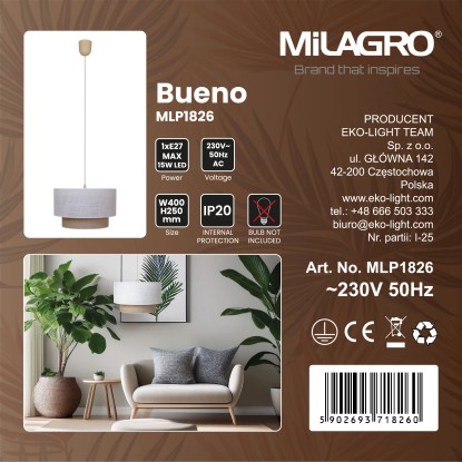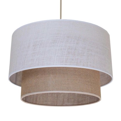 Lampa wisząca BUENO to harmonijne połączenie klasycznej formy z ciepłem naturalnych materiałów. Jej dwuwarstwowy klosz, wewnętrzny w odcieniu beżu i zewnętrzny w subtelnej bieli, nadaje wnętrzu przytulności i elegancji. Minimalistyczny design doskonale wpisuje się w nowoczesne, skandynawskie oraz naturalne aranżacje.