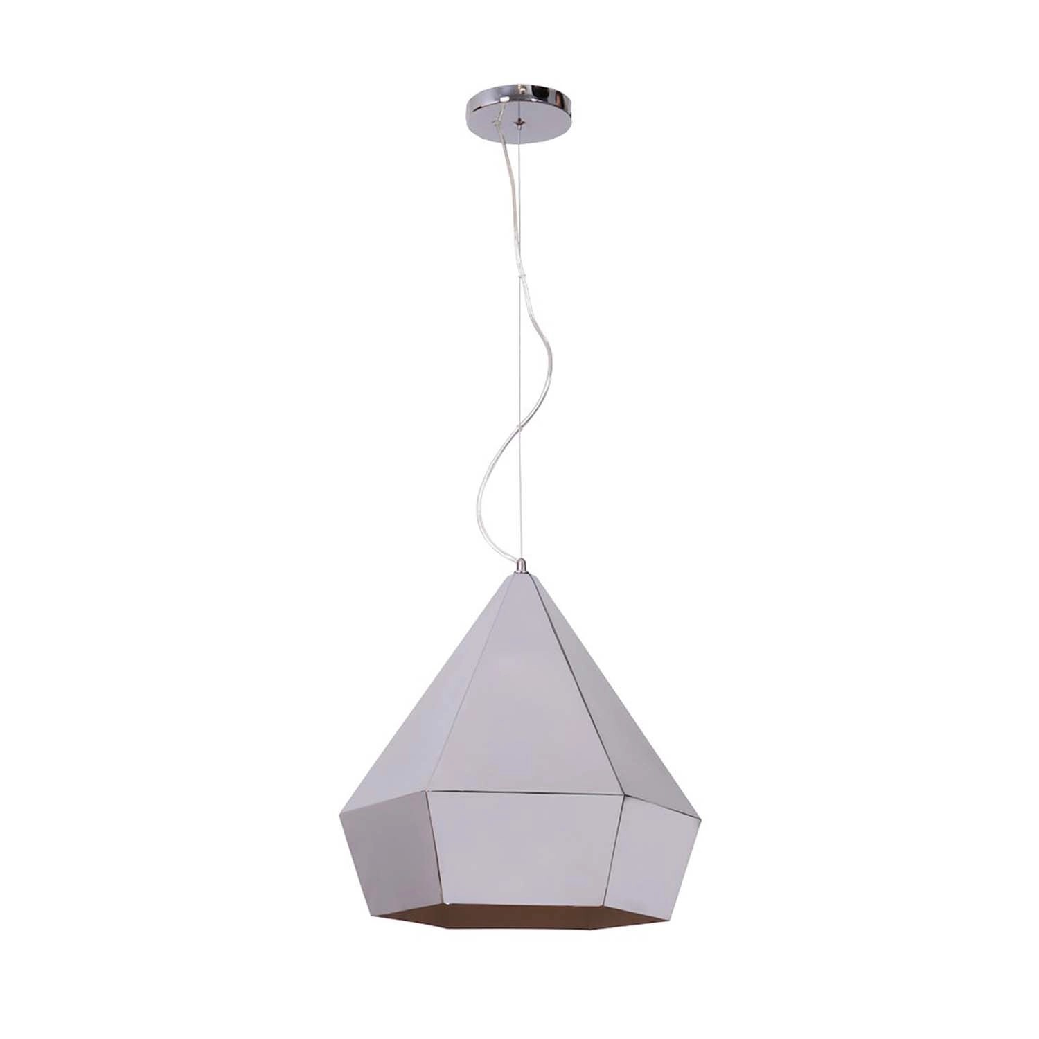 Model Diamante Silver to ciekawa lampa wisząca wykonana z bezpiecznego i trwałego metalu o chromowanym wykończeniu. Lampa ma jeden wymienialny punkt świetlny LED z gwintem E27 o zalecanej mocy max. 15W. Produkt sprzedawany jest bez źródła światła w zestawie, należy je zakupić oddzielnie.