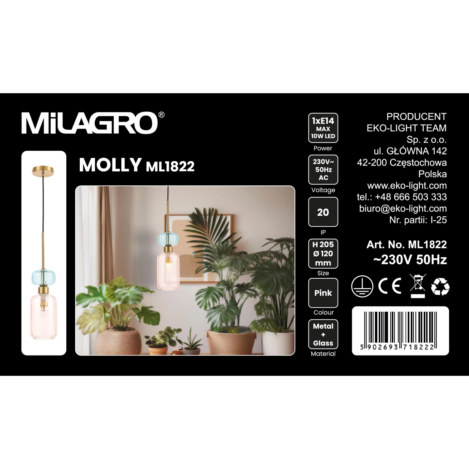 MiLAGRO Lampa wisząca MOLLY 1xE14 10W różowa