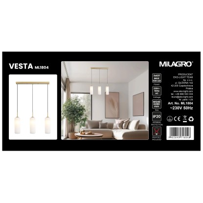 MiLAGRO Lampa wisząca VESTA 3xE27 15W biało-złota