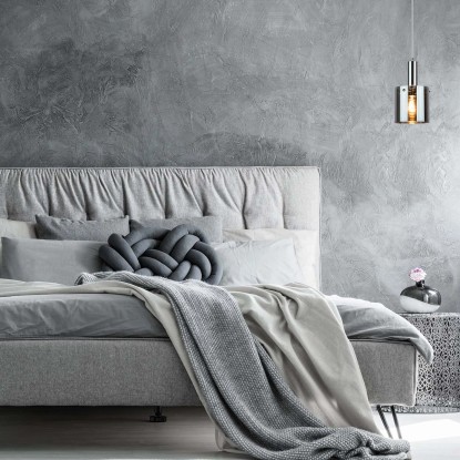 Lampa Donati wyróżnia się nowoczesnym, minimalistycznym designem, który łączy elegancję z industrialnym charakterem. Składa się z jednego chromowanego klosza o cylindrycznym kształcie, zawieszonego na srebrnym przewodzie osadzonego na okrągłej podsufitce w kolorze srebrnym, co nadaje jej subtelny i lekki wygląd.