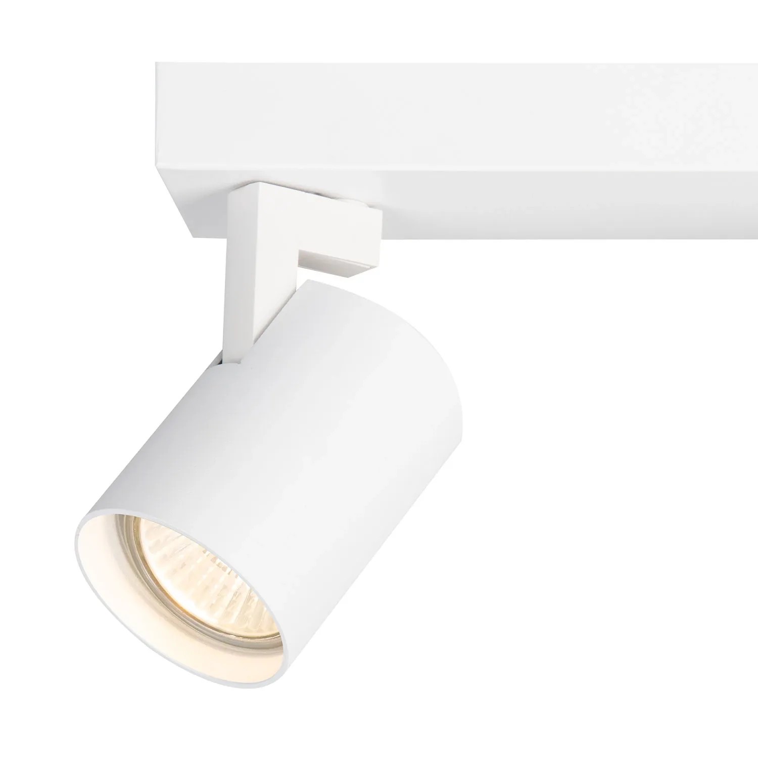 Biała listwa o długości 26 cm z dwoma eleganckimi reflektorami o prostej formie tuby o średnicy 58 mm w ponadczasowym białym kolorze. Lampy przystosowane są do źródeł światła z LED z gwintem GU10 o maksymalnej mocy 9W. Żarówki nie wchodzą w skład zestawu, należy je zakupić oddzielnie.