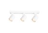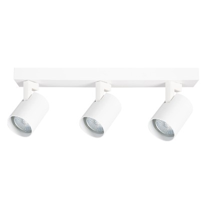 Biała listwa o długości 38 cm z trzema eleganckimi reflektorami o prostej formie tuby o średnicy 58 mm w ponadczasowym białym kolorze. Lampy przystosowane są do źródeł światła z LED z gwintem GU10 o maksymalnej mocy 9W. Żarówki nie wchodzą w skład zestawu, należy je zakupić oddzielnie.