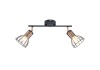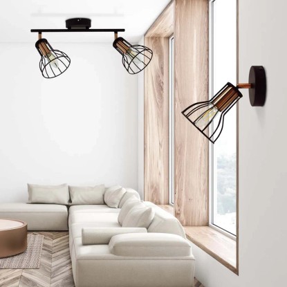 Podwójna listwa, która doskonale współgra niemal z każdym pomieszczeniem, nadając mu wyjątkowego charakteru i klasy. Nowoczesny styl oraz czarne, metalowe klosze z dodatkiem miedzi, na pewno podniosą walory estetyczne wystroju: salonu, sypialni, przedpokoju, czy innego pomieszczenia. Mocowanie kloszy umożliwia dowolne ustawienie kąta padania światła. Źródło światła stanowią dwie żarówki o mocy 8W, z gwintem E14 do nabycia oddzielnie.