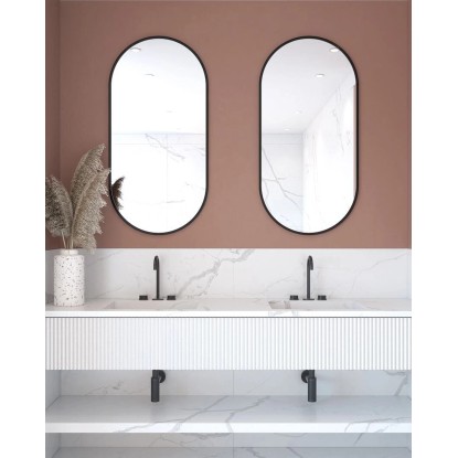 Lustro bez LED Oval Line ma grubość szkła 4 mm, co zapewnia jego solidność. Jego wymiary wynoszą 100 x 50 cm, co sprawia, że jest odpowiednie do większych przestrzeni. Odległość lustra od ściany to 20 mm, co gwarantuje estetyczny i stabilny montaż. Czarna rama nadaje mu nowoczesny i elegancki wygląd, pasujący do wielu stylów wnętrz. Jest to funkcjonalny element, który doskonale sprawdzi się w łazience, przedpokoju czy salonie.