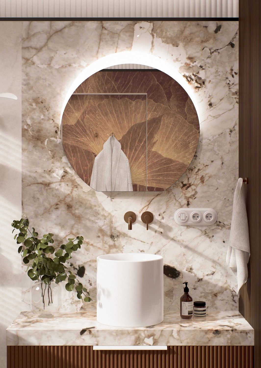 Lustro z LED Moon Line o wymiarach 77.8x80 cm ma grubość szkła 4 mm, co zapewnia jego trwałość i stabilność. Odległość lustra od ściany wynosi 30 mm, co ułatwia montaż. Montaż odbywa się za pomocą kołków, co gwarantuje solidne mocowanie. Posiada klasę szczelności IP44, co sprawia, że jest bezpieczne w wilgotnych pomieszczeniach, takich jak łazienka. Dodatkowo, lustro oferuje opcje maty grzewczej oraz wyłącznika bezdotykowego, a także neutralną barwę światła o wartości 1200 lumenów, co zwiększa jego funkcjonalność.