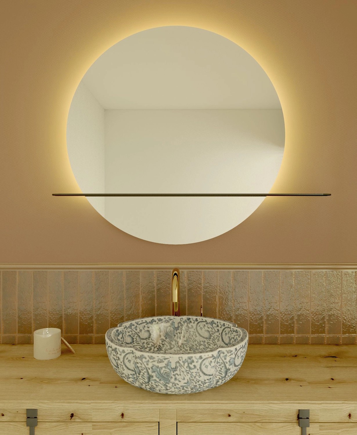 Lustro z LED Round Line ma grubość szkła 4 mm, co zapewnia trwałość i stabilność. Odległość lustra od ściany wynosi 25 mm, co ułatwia montaż. Montaż odbywa się za pomocą kołków, co gwarantuje solidne mocowanie. Posiada klasę szczelności IP44, co sprawia, że jest bezpieczne w wilgotnych pomieszczeniach, takich jak łazienka. Dodatkowo, lustro oferuje opcje maty grzewczej oraz wyłącznika dotykowego, a także światło o wartości 1200 lumenów o barwie neutralnej.