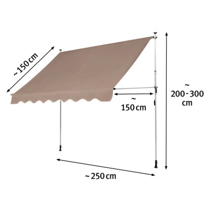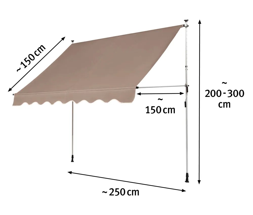 Wysokość markizy można regulować przy pomocy ręcznej korby. Daje to możliwość dobrego dopasowania osłony do swoich potrzeb. Prosta konstrukcja i solidność wykonania dają pewność niezawodności i trwałości przez lata. Klasa odporność wiatrowej to 2. Osłona jest odporna na działanie warunków atmosferycznych, idealnie nadaje się więc do użytku zewnętrznego. Wymiary: 2,5 m (szer.) x 1,5 m (odl. daszka) x 2 - 3 m (regulowana wysokość).