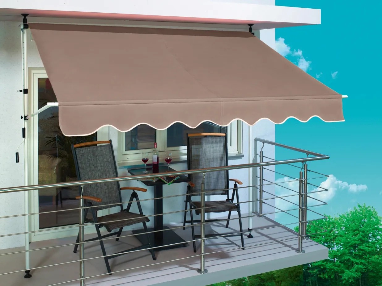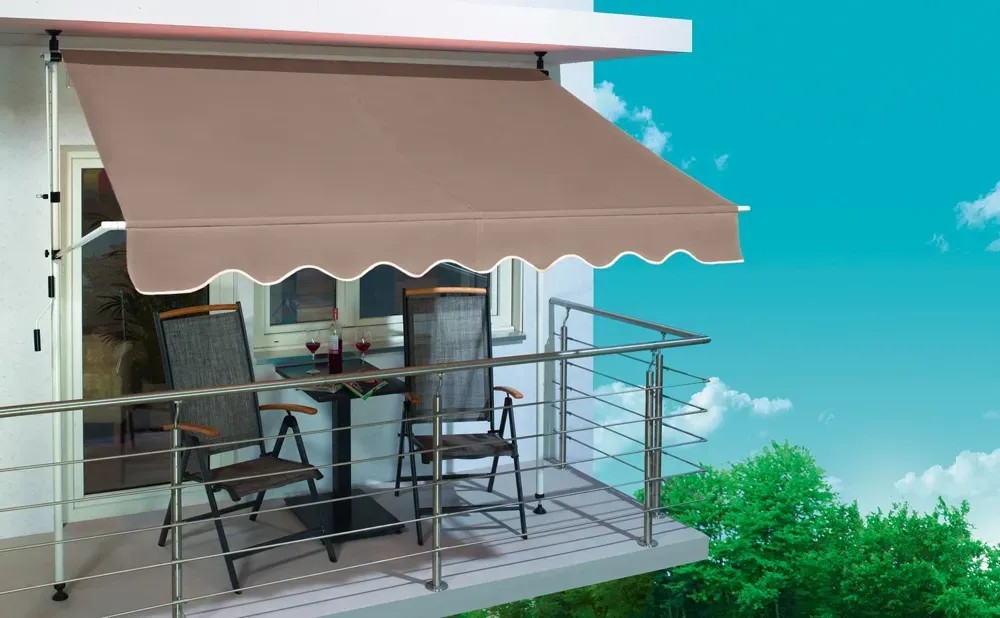 Markiza sprawdzi się także na małych powierzchniach, gdzie nie zmieszczą się wielkie konstrukcje. Łączy funkcjonalność z estetycznym wyglądem. Brązowa, poliestrowa tkanina z łatwością dopasowuje się do stylistyki otoczenia i dobrze współgra z zielenią roślin. Jest elegancka, a jednocześnie uniwersalna. Wykonanie z poliestru gwarantuje też trwałość i bezproblemowość użytkowania.