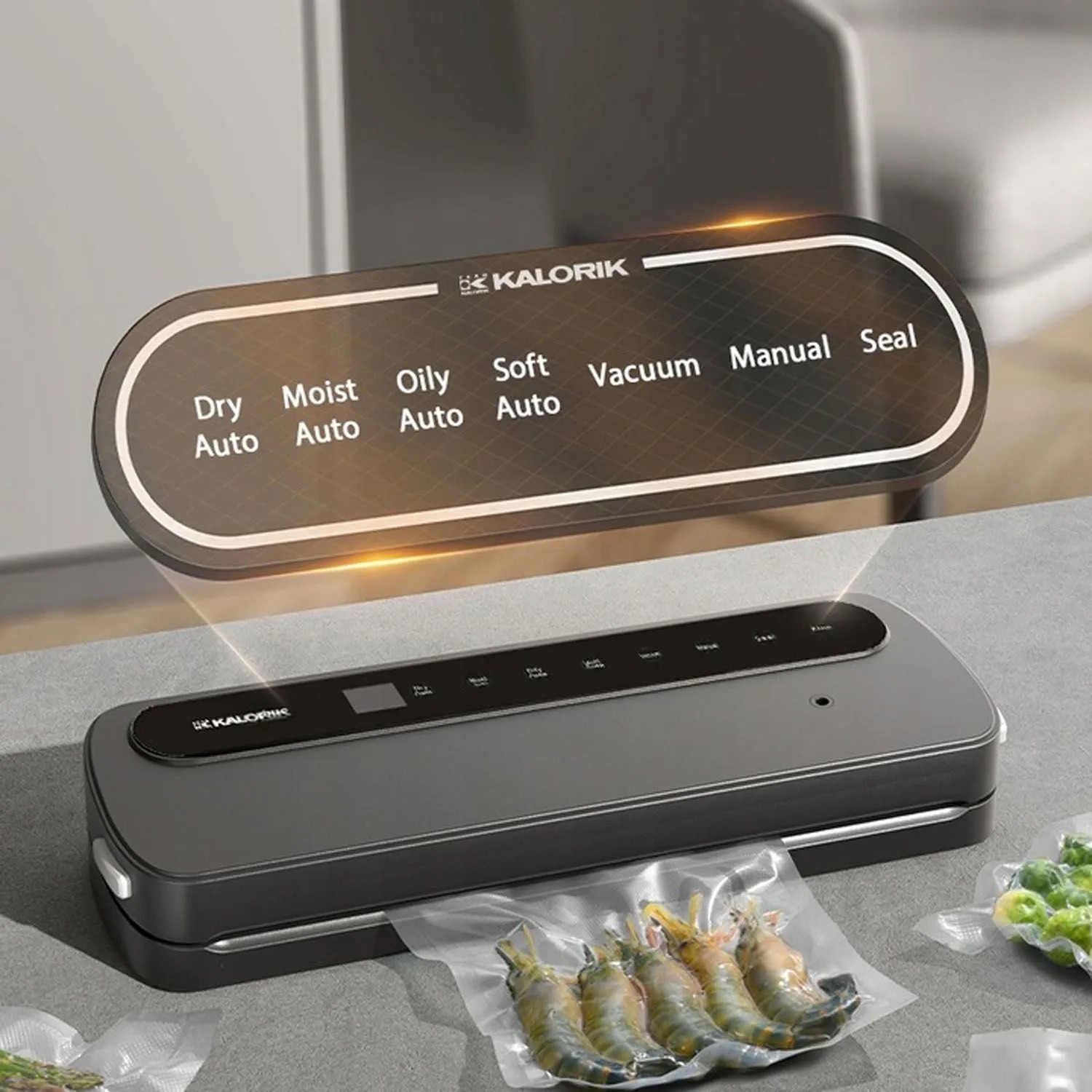 Zgrzewarka próżniowa FSV 2000 W to praktyczne urządzenie, które pozwala przedłużyć świeżość żywności, ograniczyć marnowanie produktów oraz oszczędzić miejsce w lodówce i zamrażarce. Urządzenie oferuje cztery tryby pracy - Dry do produktów suchych, Moist do lekko wilgotnych składników, Oily do tłustych produktów i Soft do delikatnych artykułów spożywczych - a także możliwość manualnego sterowania, co pozwala precyzyjnie dopasować czas i intensywność odsysania powietrza.