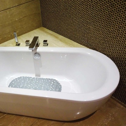 Ciekawy design wzbogaci wystrój łazienki a matowe wykończenie kamyków i duża ilośc przyssawek zapewni bezpieczeństwo.