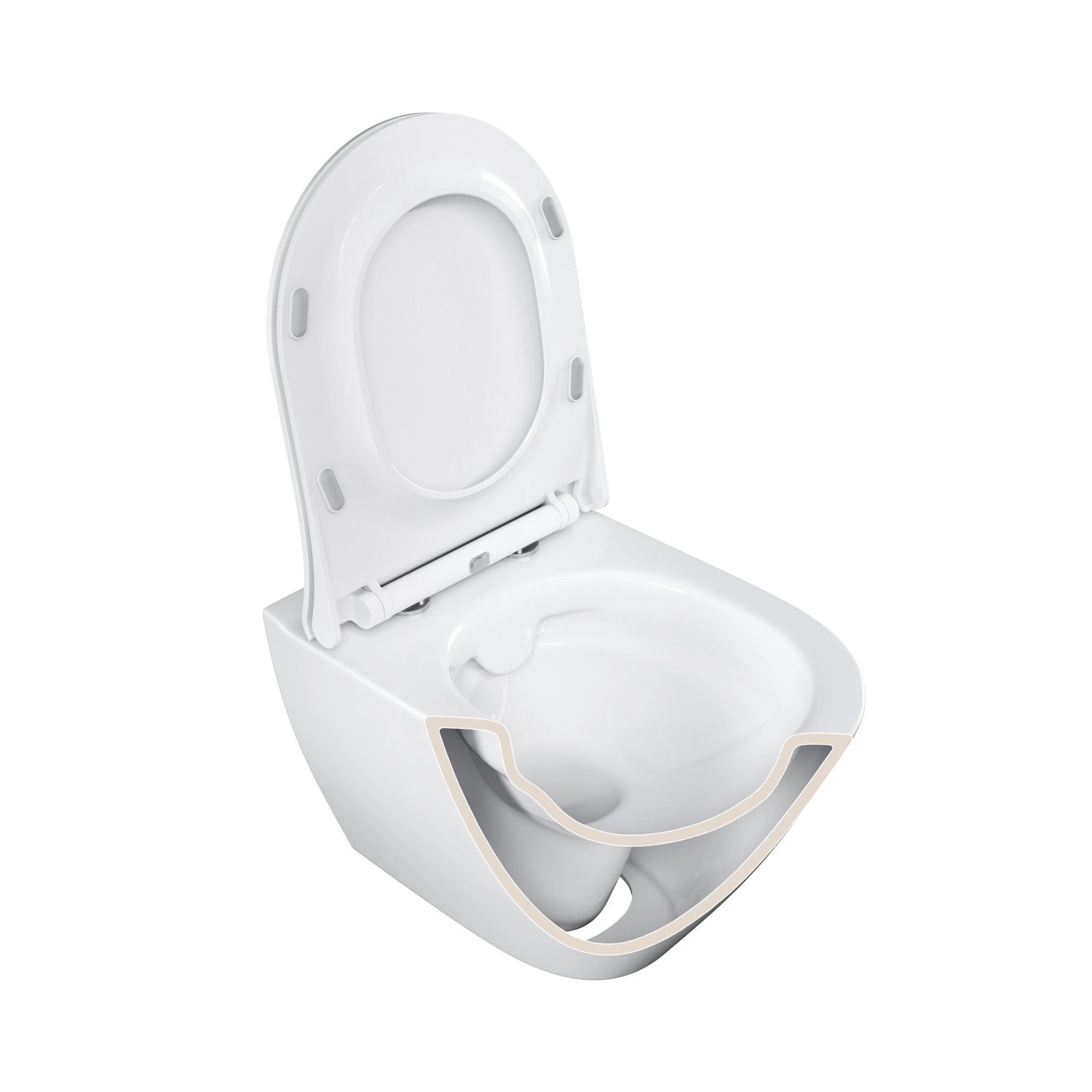 Miska WC posiada technologię Clean On. Dzięki bezkołnierzowej budowie woda spłukująca misę rozprowadzana jest w kilku kierunkach, równomiernie i dokładnie ją obmywając. Taka budowa sprawia, że brak trudno dostępnych miejsc, w których może gromadzić się brud, kamień czy zarazki. Ułatwia to również i przyspiesza czyszczenie.