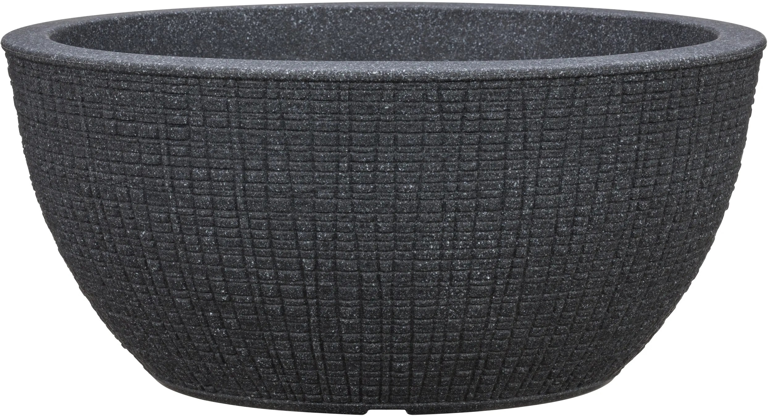 Donica wykonana z wytrzymałego i lekkiego materiału, który przypomina naturalny granit. Powierzchnia donicy ma fakturę nieregularnej kratki. Donica jest odporna na działanie UV dzięki temu nie zmienia koloru, jest mrozoodporna więc może stać na tarasie czy w ogrodzie przez rok.