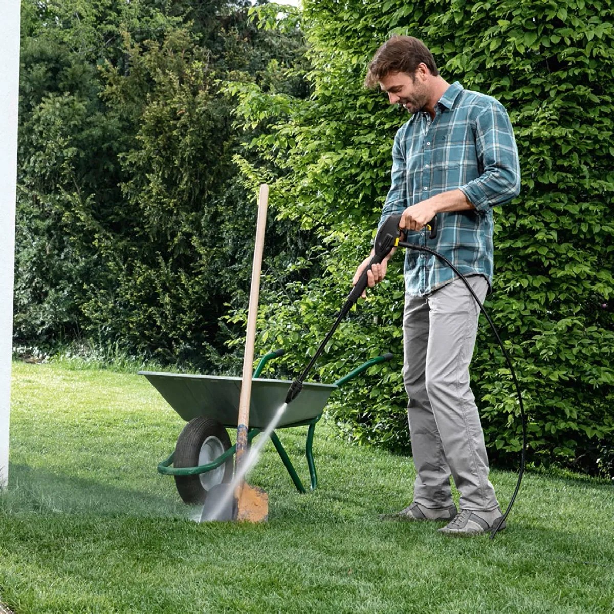 Myjka ciśnieniowa Kärcher K2 jest odpowiednia do usuwania zabrudzeń z kostki brukowej otaczającej dom, ze schodów lub ogrodzenia. Z powodzeniem poradzi sobie z zabrudzeniami występującymi na meblach ogrodowych, samochodzie czy na drobnych sprzętach. Kupując myjkę wysokociśnieniową K2 Universal Edition otrzymujesz w zestawie pistolet wysokociśnieniowy G 120Q, dyszę rotacyjną, wąż wysokociśnieniowy o długości 3m, zintegrowany filtr wody i złączkę 3/4".