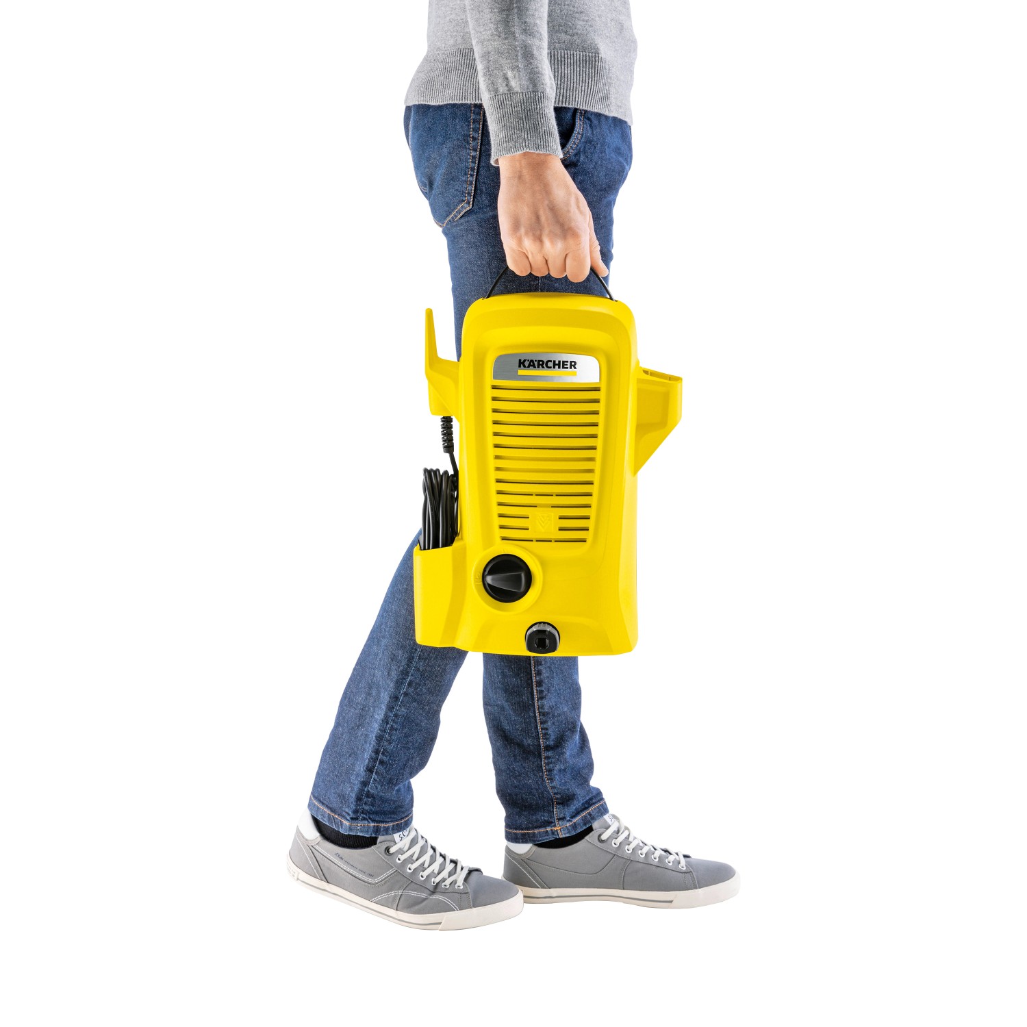 Myjka wysokociśnieniowa K2 Universal Edition wyposażona jest w zintegrowany uchwyt kablowy, co przekłada się na schludne złożenie kabla i zaoszczędzenie miejsca. Pozwala na to także wygodny schowek na akcesoria