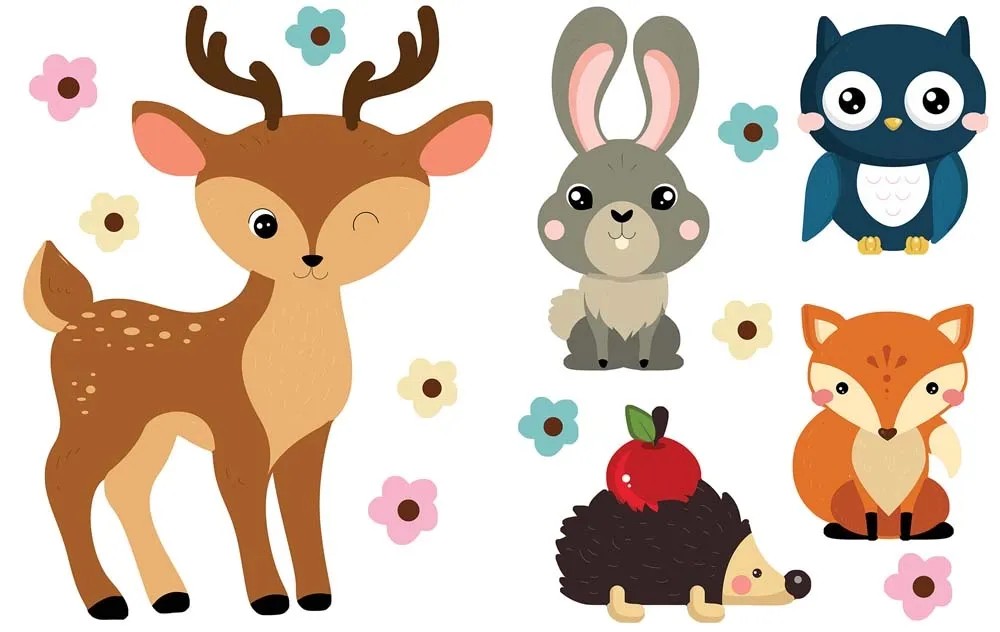 Naklejka RYSUNKOWE ZWIERZĘTA 2 szt. 45x65 cm