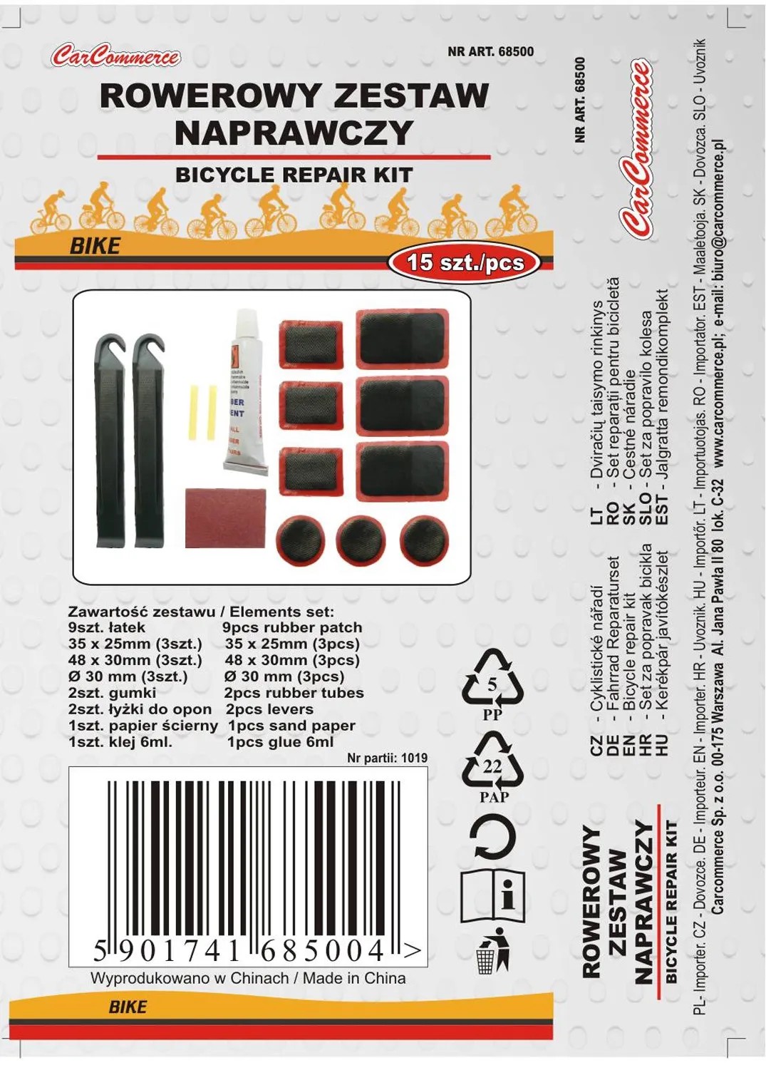 CarCommerce Zestaw naprawczy do dętek 15 elementów