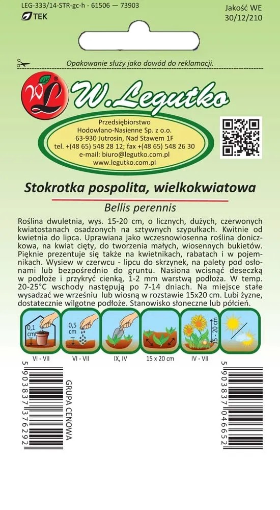 Wysiew nasiona wprost do gruntu: VI-VII, gł. 0,5 cm