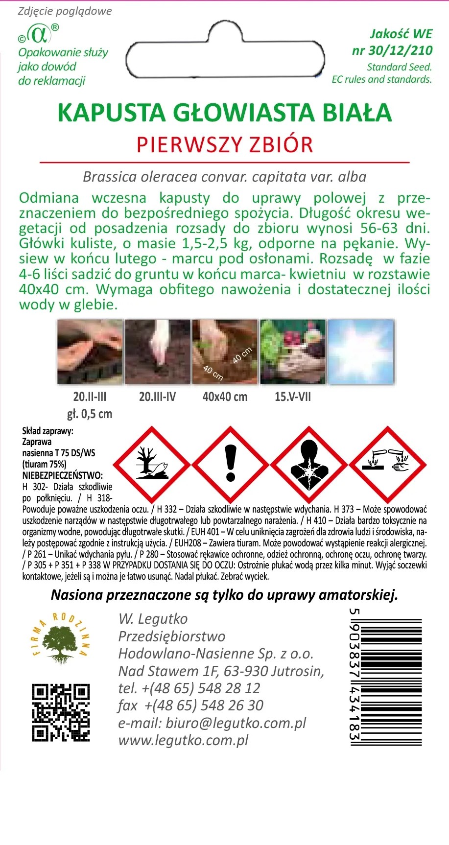 Legutko Kapusta głowiasta biała pierwszy zbiór 2g