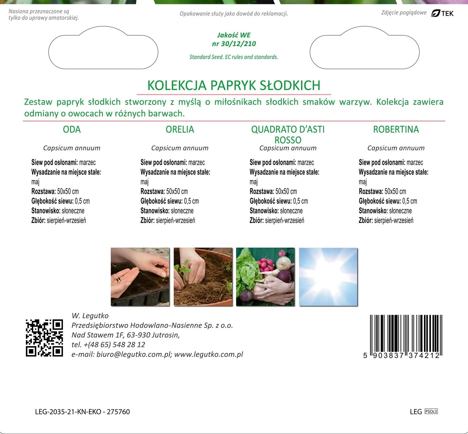 Kolorowa i starannie dobrana kolekcja nasion papryk słodkich, stworzona z myślą o miłośnikach domowej i ogrodowej uprawy. Zestaw łączy cztery sprawdzone odmiany, które różnią się barwą, kształtem i charakterem owoców, a jednocześnie zapewniają doskonały smak, wysoką plenność i szerokie zastosowanie kulinarne.