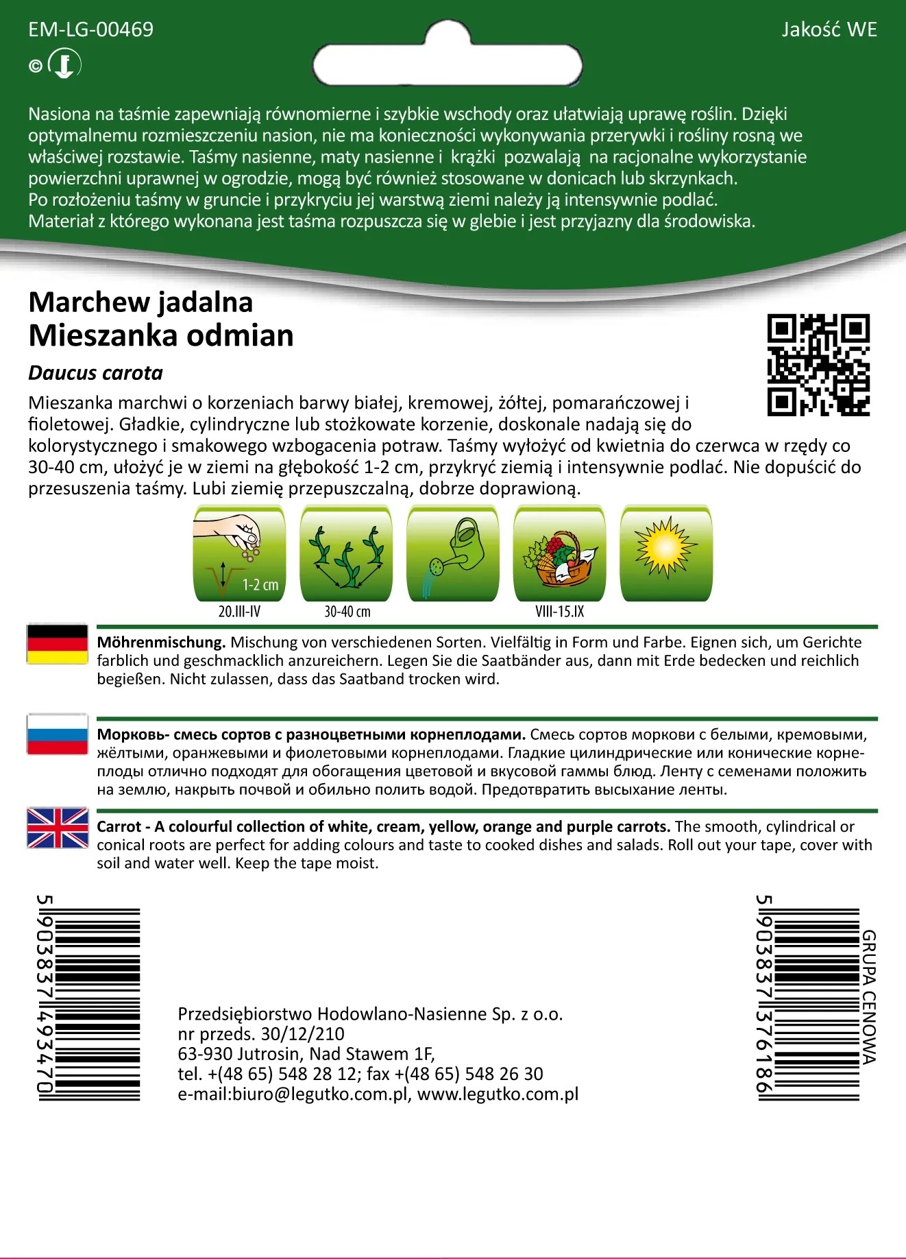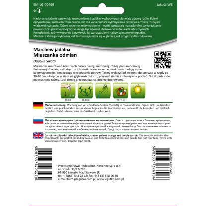 Marchew o korzeniach barwy białej, kremowej, żółtej, pomarańczowej i fioletowej.