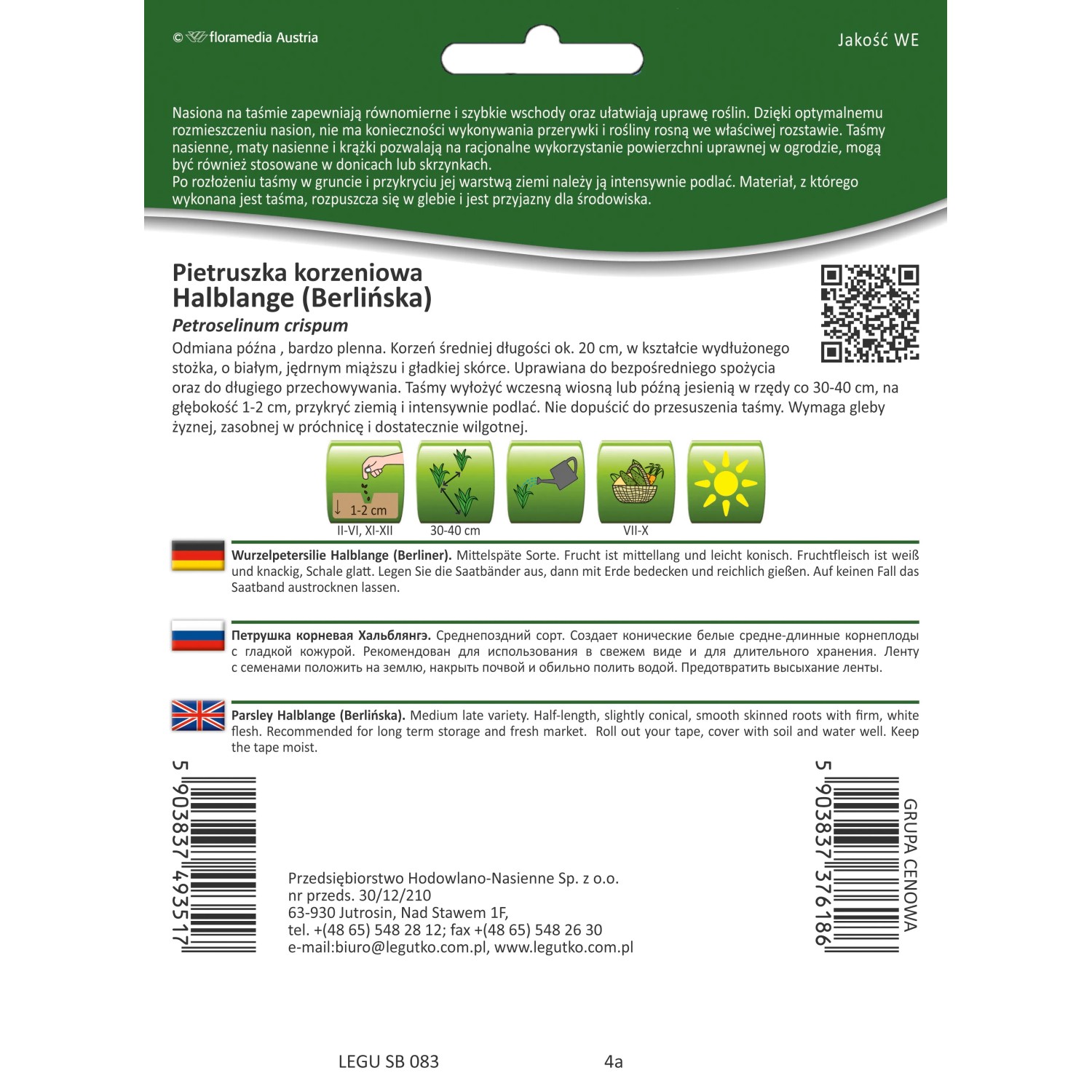 Nasiona pietruszki Halblange marki Legutko na taśmie