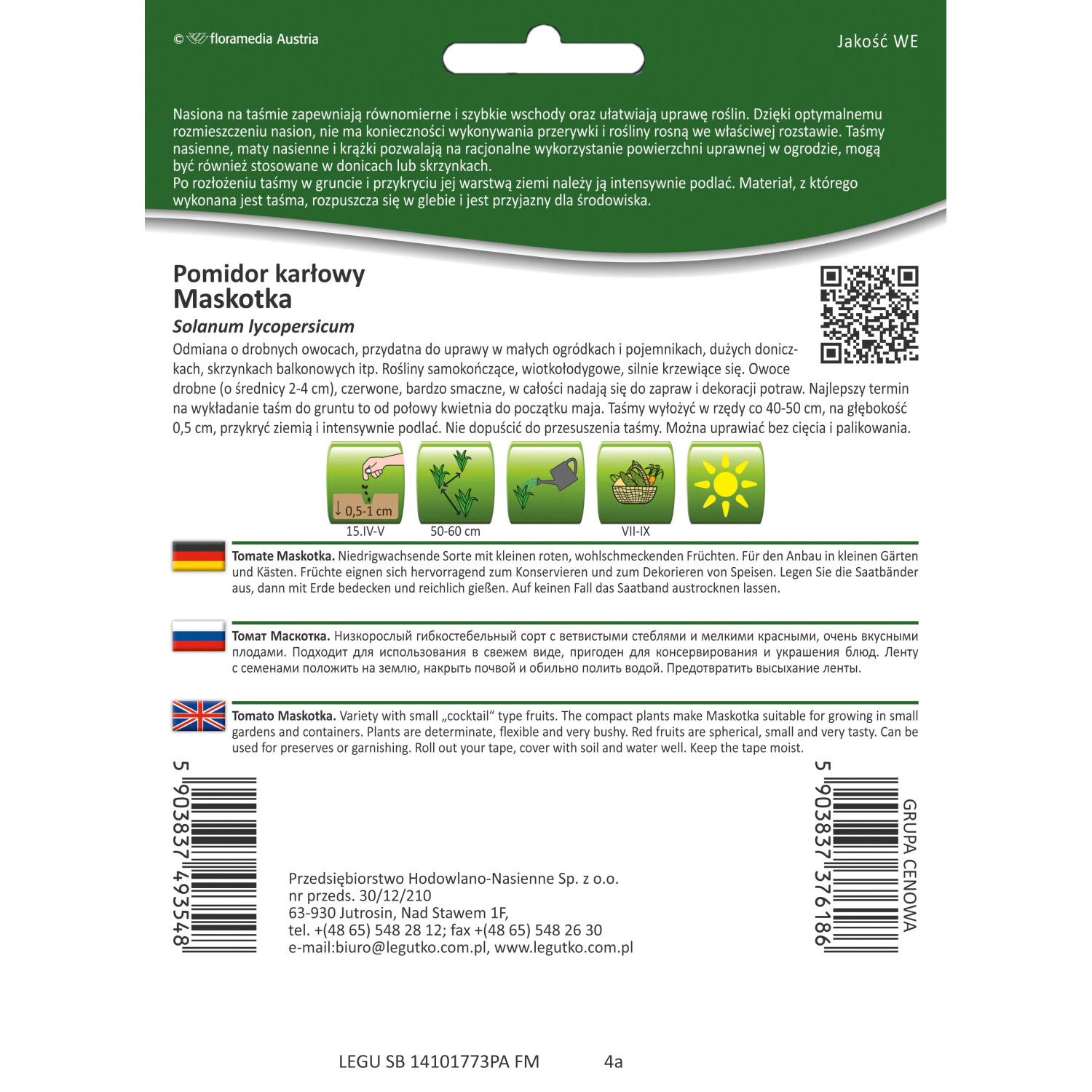 Nasiona pomidora Maskotka na taśmie marki Legutko