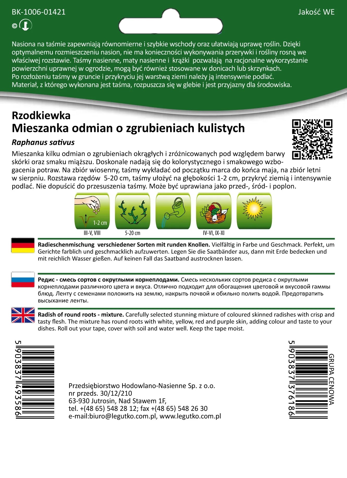 Rzodkiew mix odmian kulistych taśma - 6 m