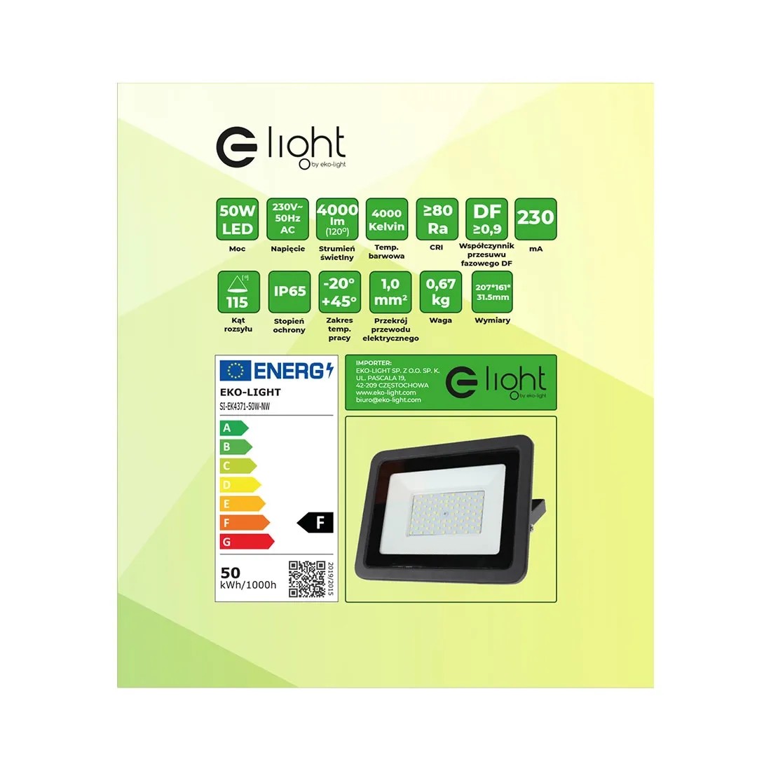 Eko-Light Naświetlacz LED 50W 4800lm 4000K IP65