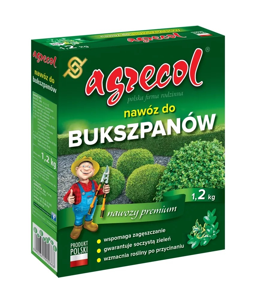 Najwyższej jakości, wieloskładnikowy nawóz granulowany specjalnie przygotowany do nawożenia wszelkich gatunków i odmian bukszpanów. Jego pełnowartościowy skład o wysokiej zawartości azotu, fosforu i potasu, w pełni pokrywa zapotrzebowanie pokarmowe roślin. Prawidłowe nawożenie bukszpanów gwarantuje optymalny wzrost oraz intensywne i symetryczne krzewienie. Systematyczne stosowanie nawozu zapewnia zdrową zieleń całej rośliny. Sprawdza się również w nawożeniu trzmieliny. Specyfika nawozu sprawia, że jest on wygodny w stosowaniu, wydajny i skuteczny.