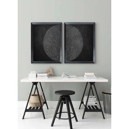Wydruk osadzony jest na płycie HDF o grubości 3 mm, co gwarantuje sztywność i estetyczne wykończenie. Całość oprawiona została w ramę z polistyrenu - lekkiego, a zarazem wytrzymałego tworzywa sztucznego, w 100% nadającego się do recyklingu.