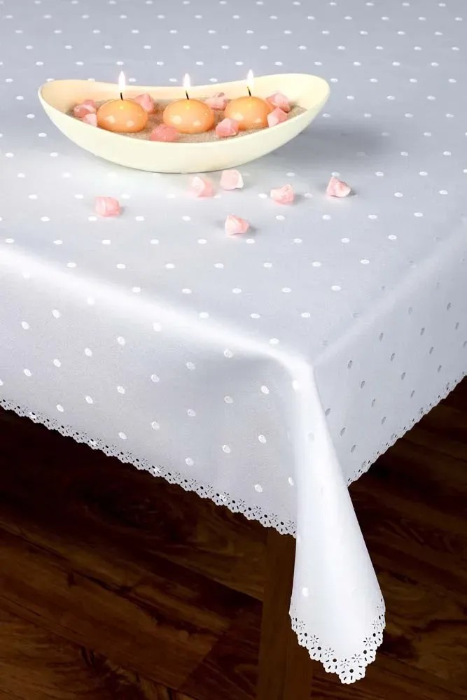 Plamoodporny obrus jest propozycją dla każdego, kto ceni sobie styl, klasę i wygodę. Wykonany z wysokiej jakości poliestru i precyzyjnie wykończony - stanowi idealną dekorację każdego stołu. Jest pokryty specjalną warstwą ochronną, która nie przyjmuje żadnych plam i powoduje, że wylany na obrus płyn nie wsiąka. Obrus może być prany w pralce, nie wymaga krochmalenia ani prasowania. Obrus z apreturą, która zwiększa odporność na plamy, po każdym praniu należy obrus wyprasować aby zachował apreturę.