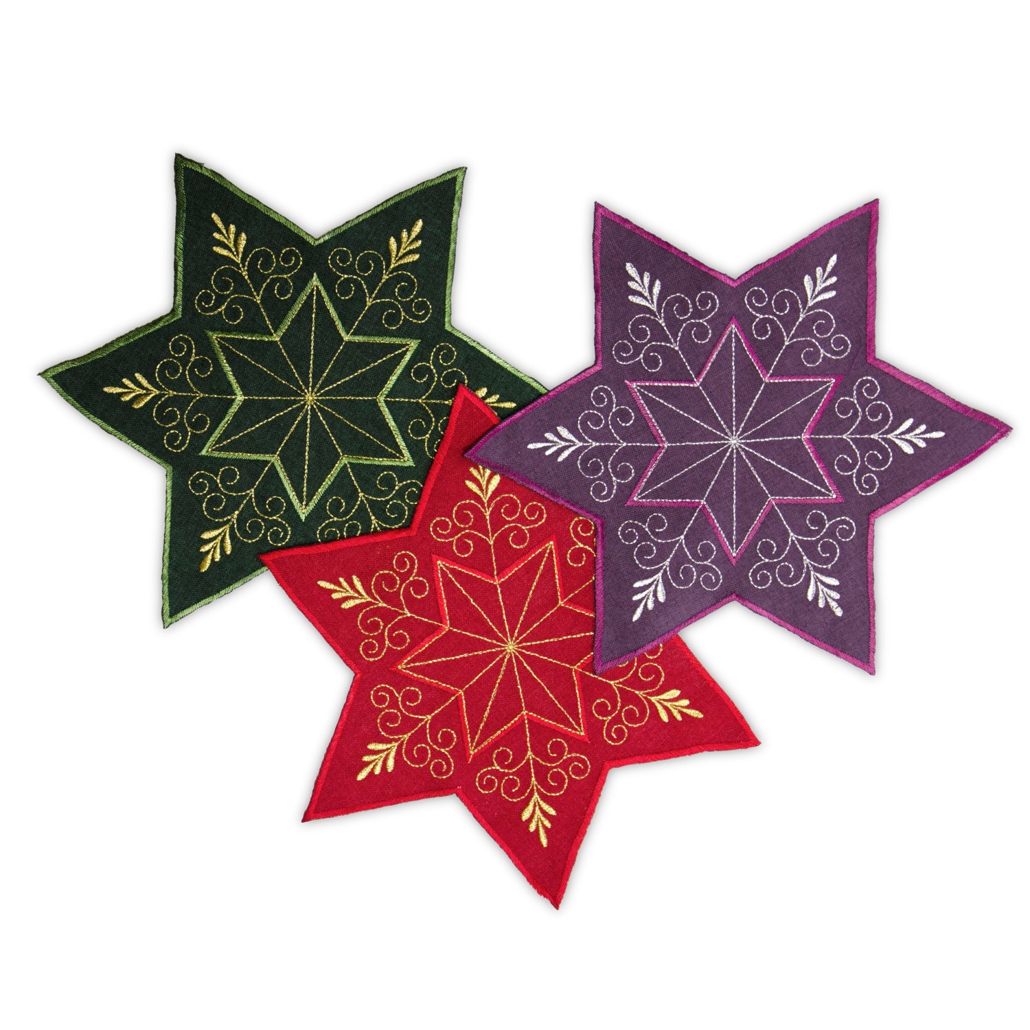 Serwetka Matthew, o średnicy 30 cm, firmy BBK. Jest to elegancka serwetka świąteczna w kształcie gwiazdy, dzięki której wprowadzisz do swoich wnętrz klimat Bożego Narodzenia.
