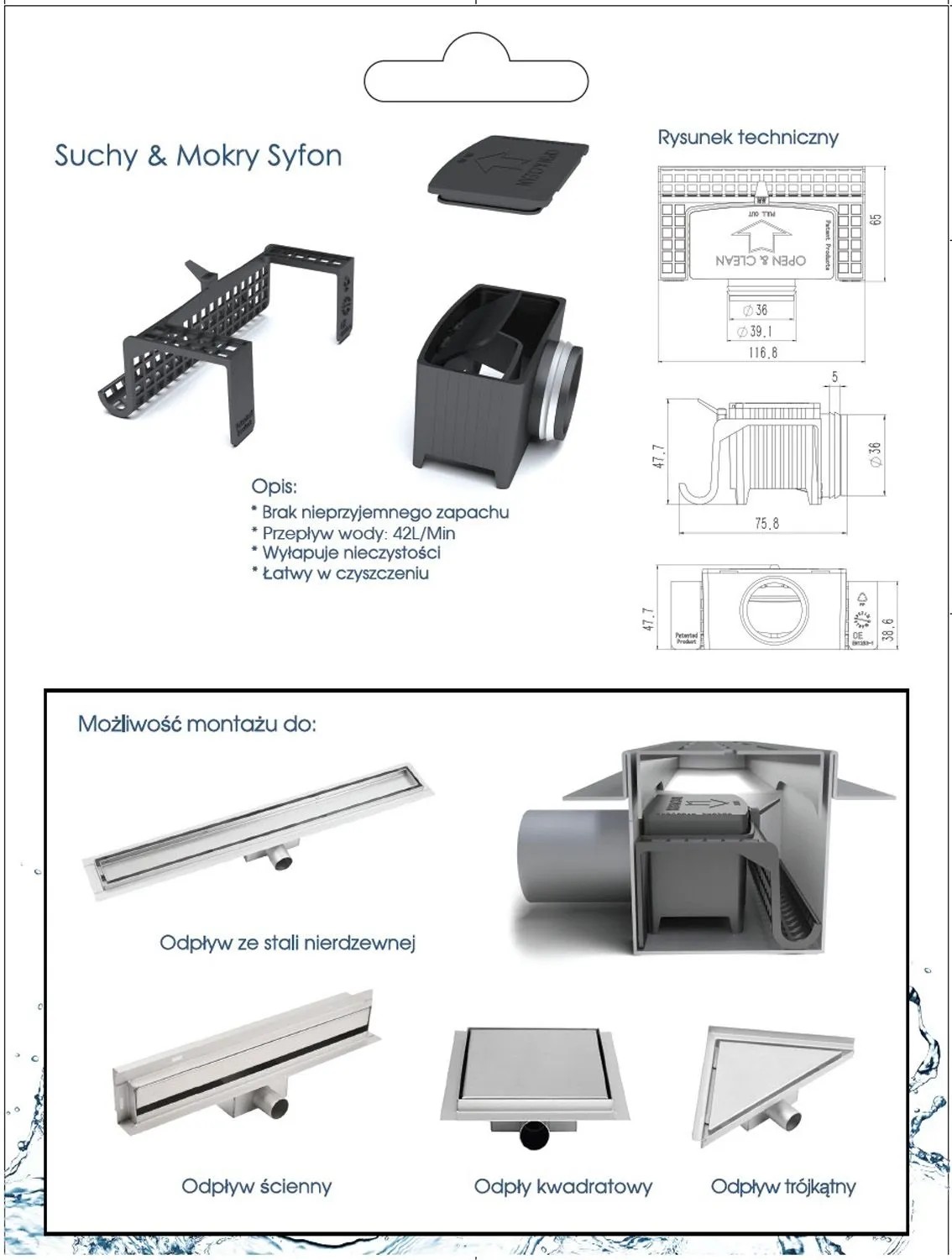 Odpływ liniowy z suchym i mokrym syfonem to praktyczne rozwiązanie zapewniające skuteczne odprowadzanie wody oraz blokadę nieprzyjemnych zapachów.