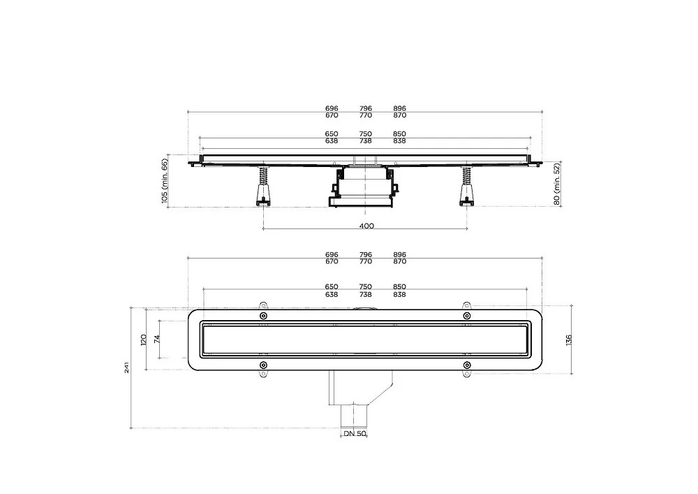 Przepustowość odpływu wynosi do 48 l/min (w zależności od wysokości strumienia wody i zmniejszenia odpływu), maksymalne obciążenie to 300kg, natomiast minimalna głębokość montażowa to 52mm