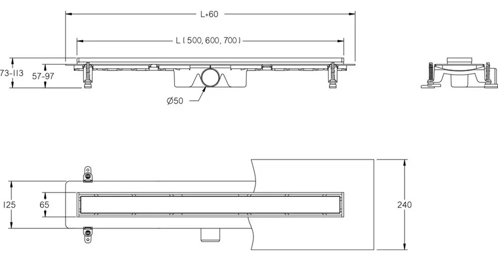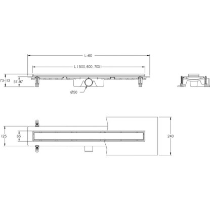 Odpływ liniowy z rusztem (do wklejenia płytki lub po odwróceniu płaski czarny) cechuje się klasyczną i prostą konstrukcją, a także dostępny jest w rozmiarach 50, 60 i 70 cm długości. Odpływy liniowe BLACK TARGET polecane są do montażu w nowoczesnych łazienkach oraz obiektach użytku publicznego.