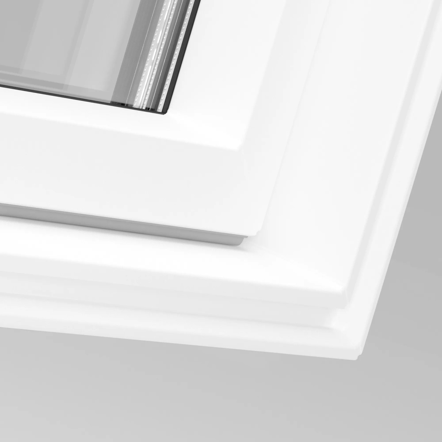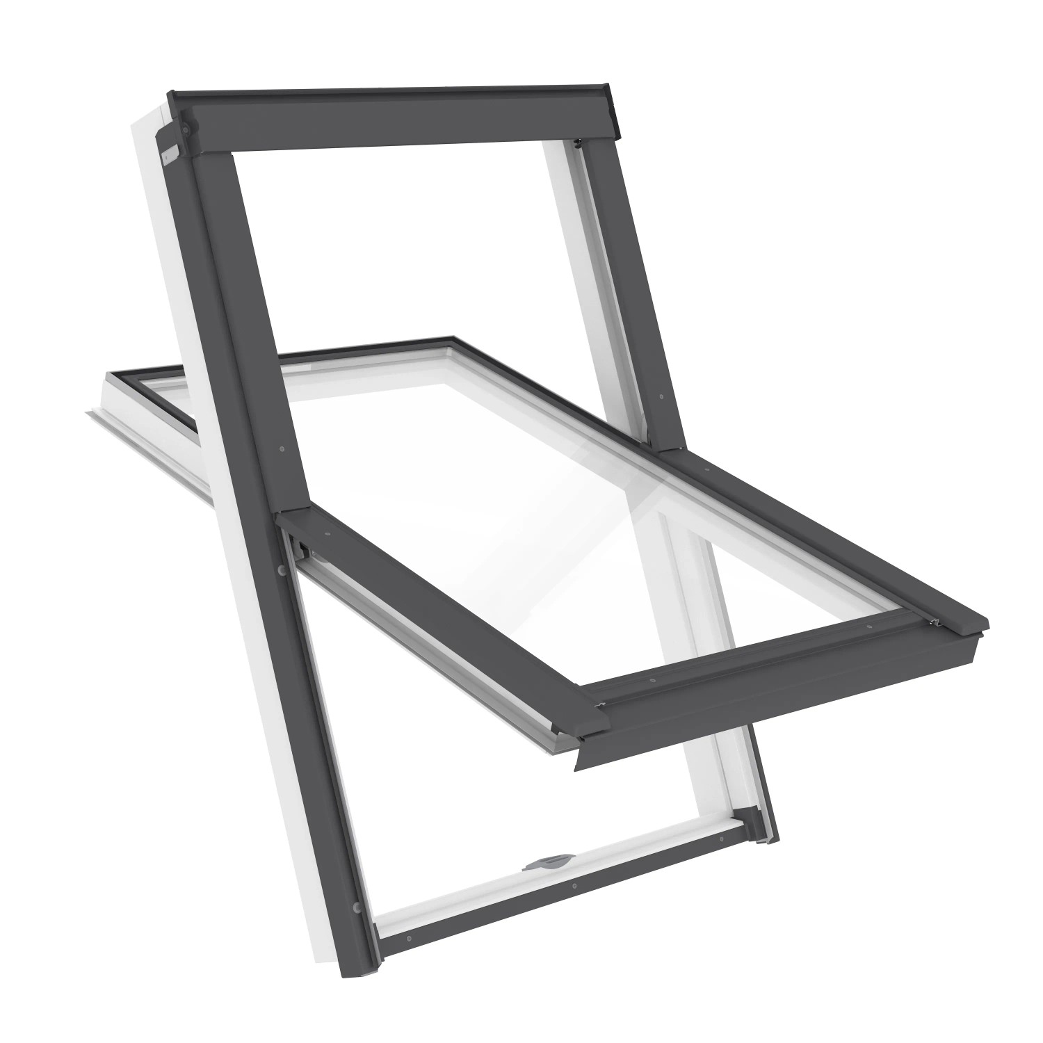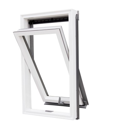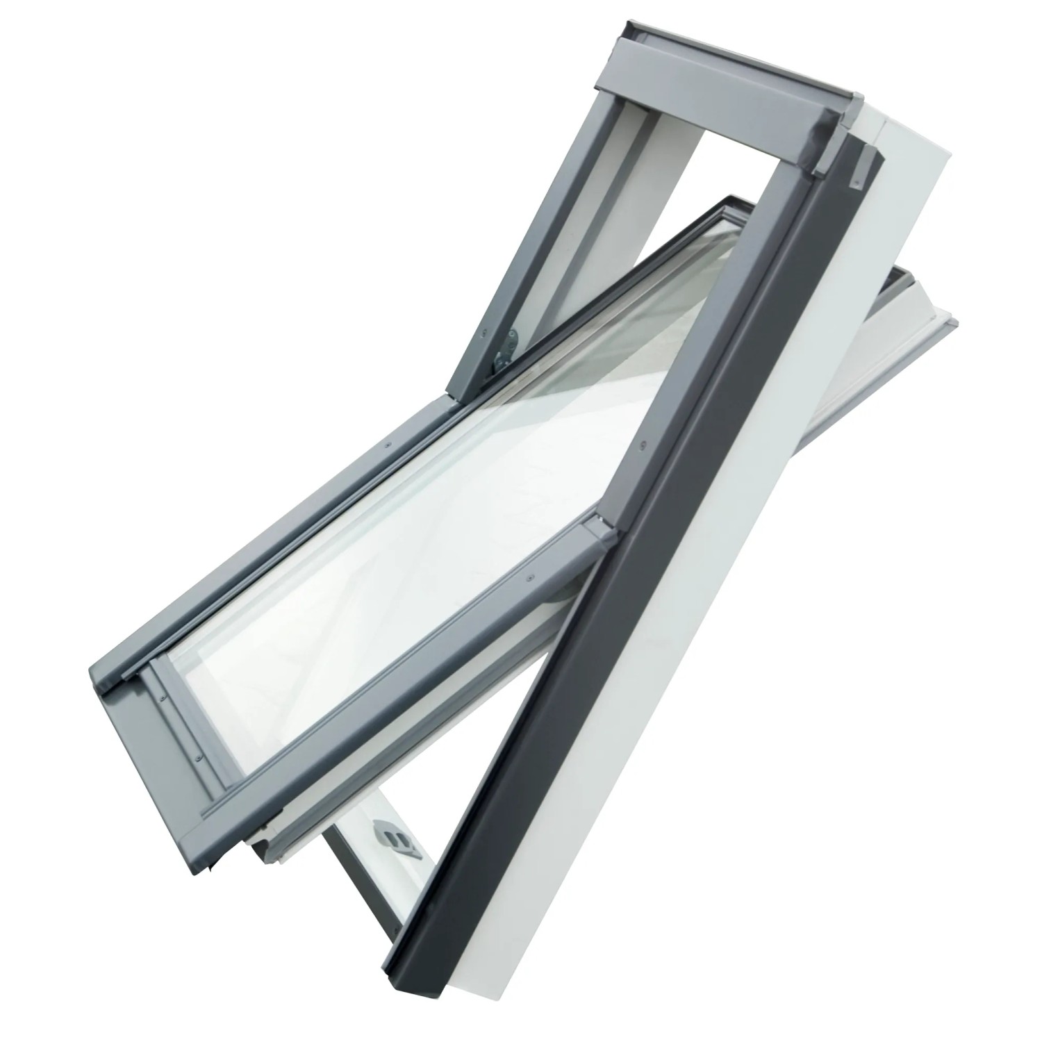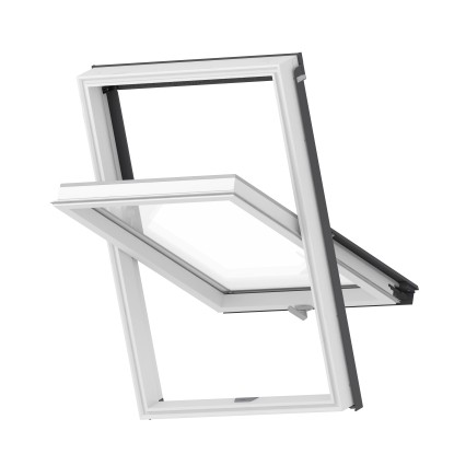 Białe wykończenie PVC rozjaśnia pomieszczenie i nadaje mu estetycznego wyglądu. Okno może być ustawione w trzech pozycjach używając odlewanej z cynku rączki. Dwie pozycje dla pasywnej wentylacji i jedna dla całkowitego zamknięcia okna.