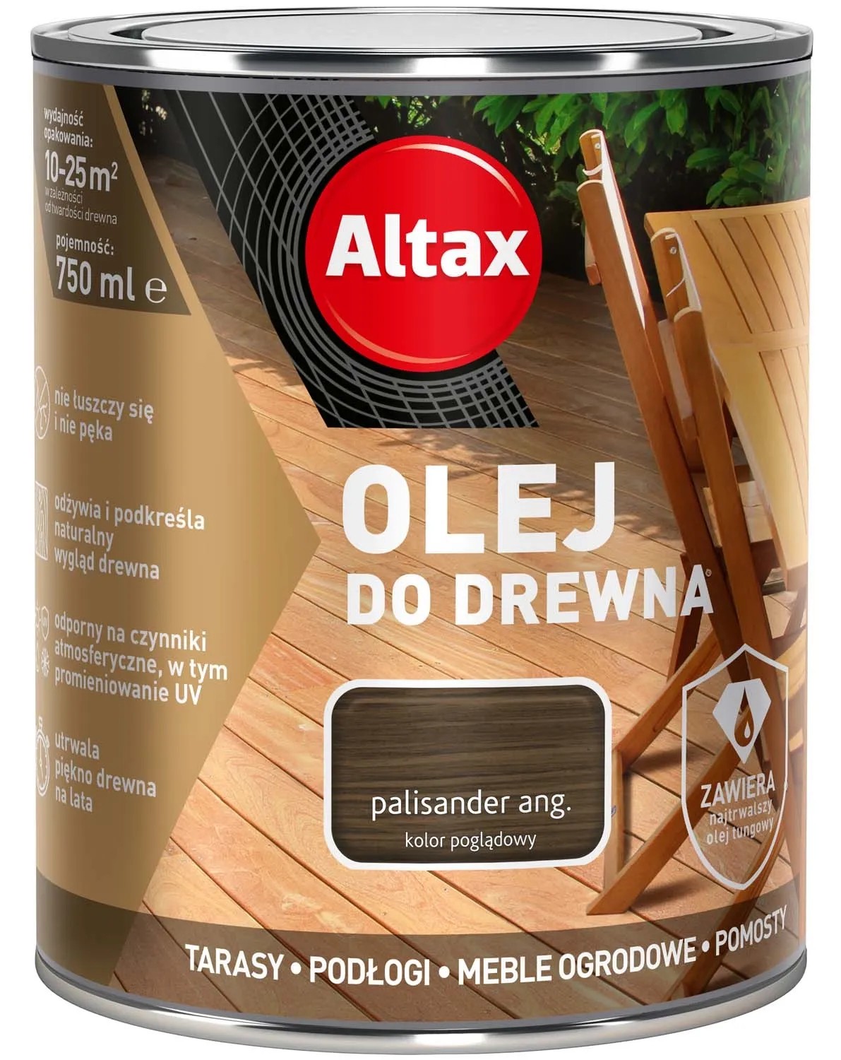 Olej jest produktem bardzo wydajnym, składającym się z mieszaniny olejów naturalnych, najwyższej jakości, do malowania krajowego i egzotycznego drewna, zarówno wewnątrz, jak i na zewnątrz pomieszczeń. Dzięki doskonałemu składowi, preparat podkreśla i wydobywa naturalne piękno drewnianych powierzchni. Jego niewątpliwą zaletą jest to, iż wnika bardzo głęboko w strukturę drewna, chroniąc je przed czynnikami atmosferycznymi, takimi jak: wilgoć, woda, śnieg oraz promieniowanie UV. Produkt zapobiega wysychaniu i pękaniu drewna, a także umożliwia jego oddychanie.