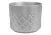Osłonka ceramiczna o średnicy 12,5 cm w kolorze srebrnym. Produkt przeznaczony do aranzacji wnętrz.