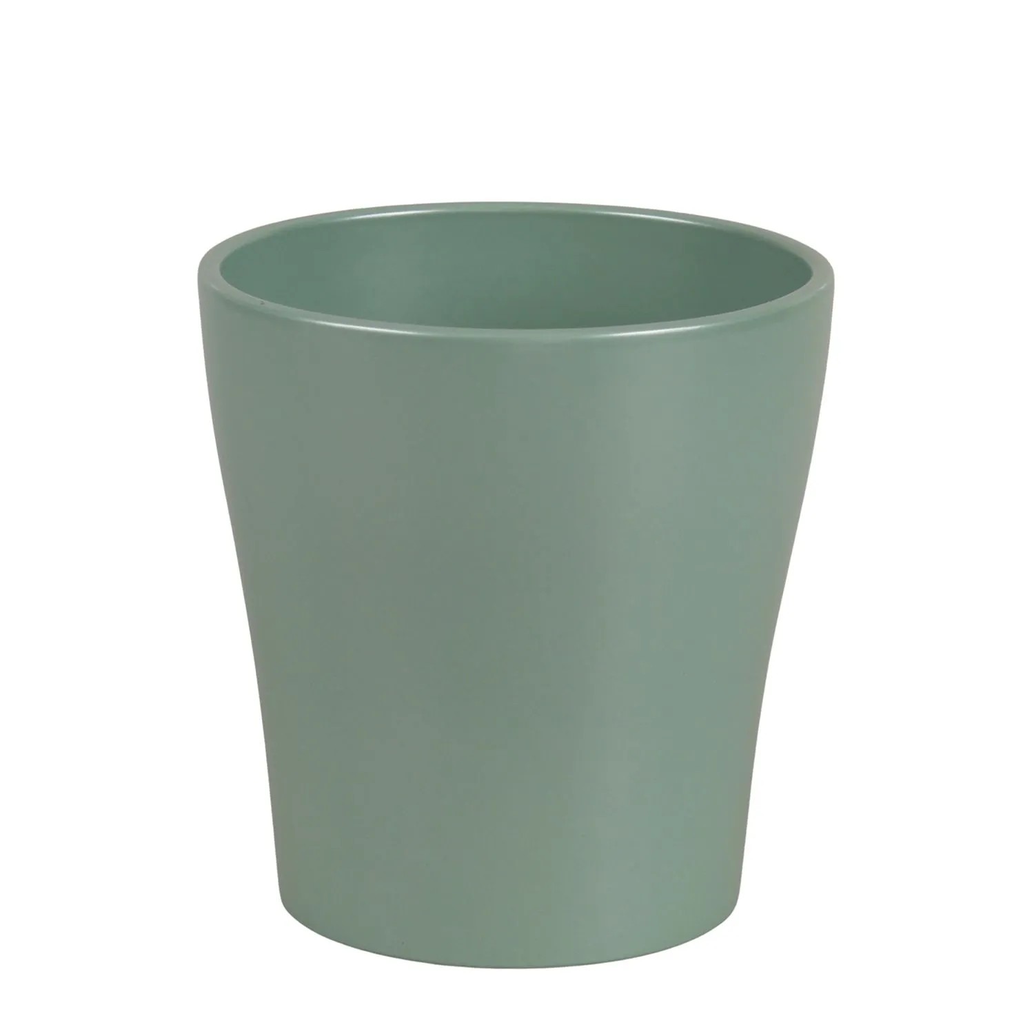 Osłonka ceramiczna o średnicy 13,5 cm w kolorze jadeitu. Produkt przeznaczony do aranżacji wewnętrznej.