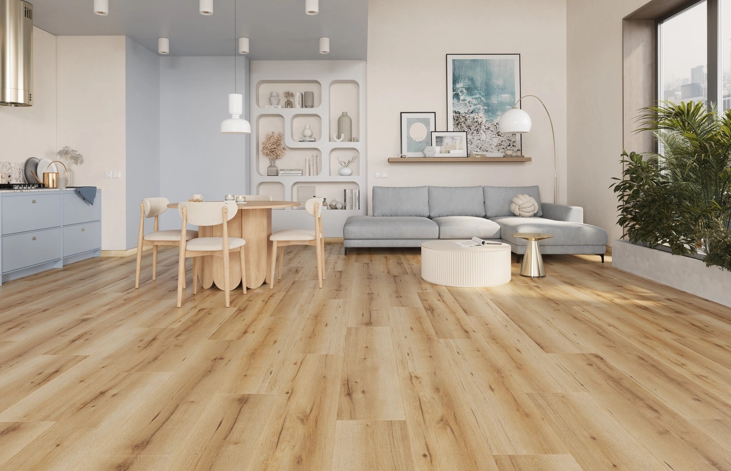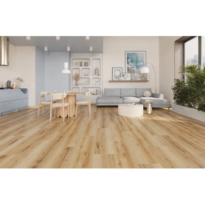 Panel posiada szerokość 280 mm i fazowane krawędzie co sprawia, że idealnie pasuje do dużych pomieszczeń. Struktura synchroniczna sprawia, że ułożona podłoga odzwierciedla wygląd desek parkietowych. Dzięki bezklejowemu systemowi łączenia, montaż przebiega szybko i bezproblemowo. Panele dzięki zastosowaniu odpowiedniej techniki produkcyjnej, jakim jest impregnowana fuga oraz hydrofobowa powłoka, posiadają odporność na działanie stojącej wody do 72 godzin i są odporne na pęcznienie krawędzi.