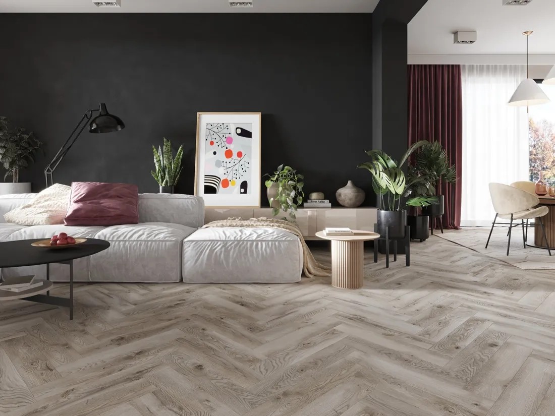 Panel posiada szerokość 131 mm i fazowane krawędzie co sprawia, że idealnie pasuje do dużych pomieszczeń. Struktura synchroniczna drewna sprawia, że ułożona podłoga odzwierciedla wygląd desek parkietowych. Ten model idealnie imituje parkiet ułożony we wzór jodełki a to dzięki mniejszym rozmiarom pojedynczej listwy, synchronicznej strukturze oraz fazowanym krawędziom.