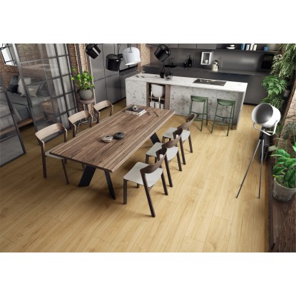 Jest to wysokiej jakości panel podłogowy o klasie ścieralności AC 6 oznaczającą wysoką odporność na ścieranie czy uderzenia. Przeznaczony jest do pomieszczeń mieszkalnych oraz do pomieszczeń użyteczności publicznej o średnim natężeniu ruchu, np. biuro, butik. Panel posiada szerokość 204 mm i fazowane krawędzie. Ilość m2 w opakowaniu: 1,845. Struktura drewna sprawia, że ułożona podłoga odzwierciedla wygląd desek parkietowych .Bezklejowy system łączenia